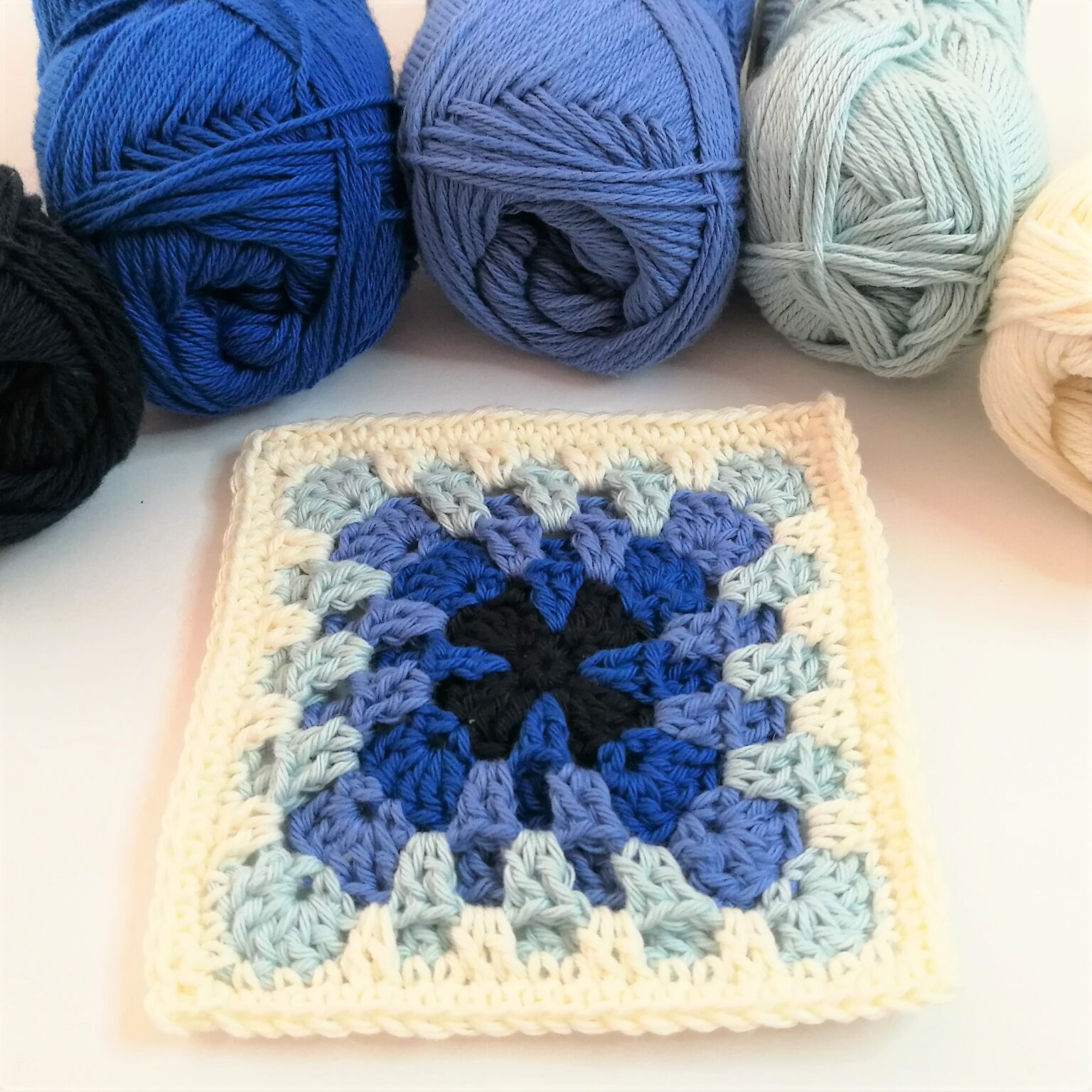 Hvis hæklefastheden følges, vil den færdige firkant være ca. 11,5 x 11,5 cm.