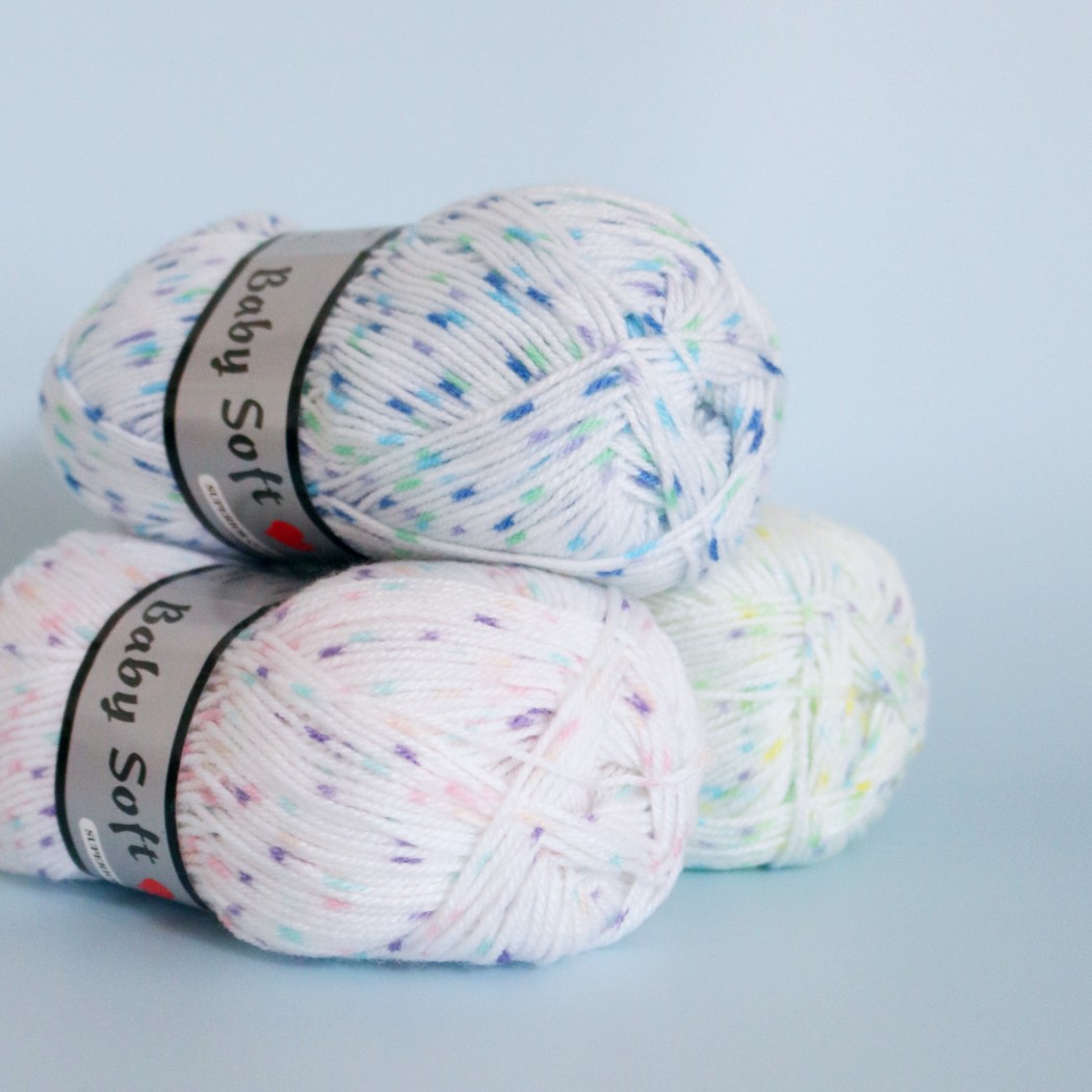 Dette garn består primært af akryl, men indeholder en lille smule viskose – det er viskosen der giver tweed-effekten, med de små stumper i andre farver.