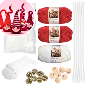 Niahs Næse-Nisser, frisk rød og hvid, hæklekit til 7 nisser