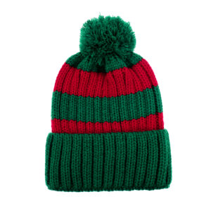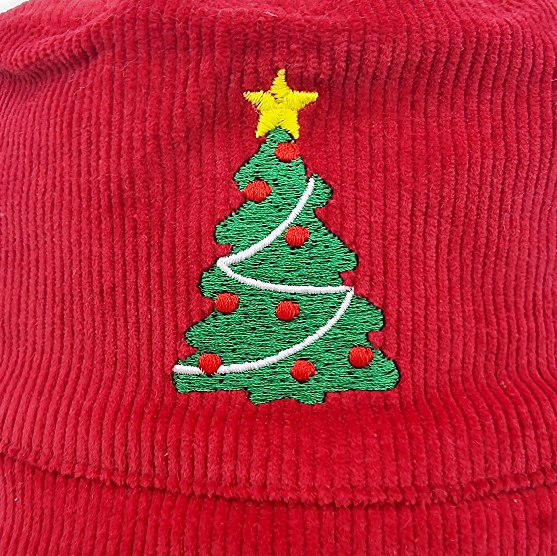 Flot rød fløjlsbøllehat med blødt hvidt foer på indersiden og julebroderi.