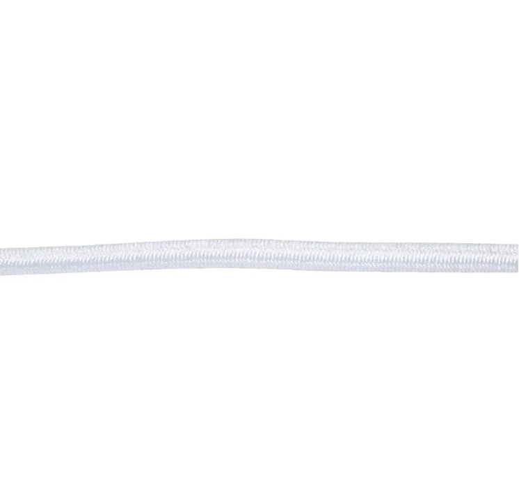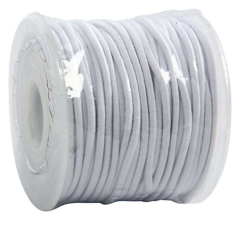 Hvid elastiksnor som kan bruges til alt fra barnevognskæde og legetøj, til smykkefremstilling osv.