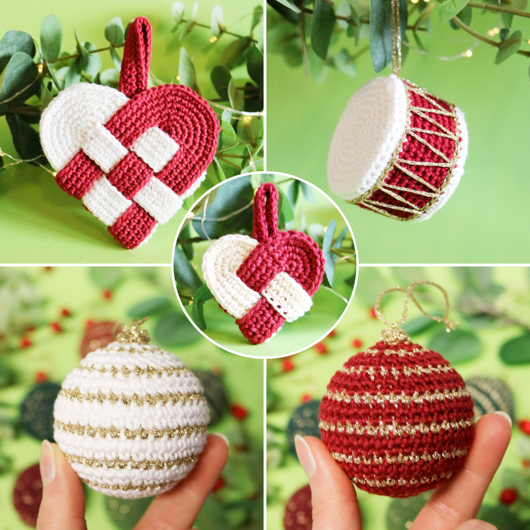 Opskrifterne er trykt i et hæfte som sendes i en pakke – opskrifterne er gratis og findes også online her: Julekugle, juletromme, stort julehjerte og lille julehjerte