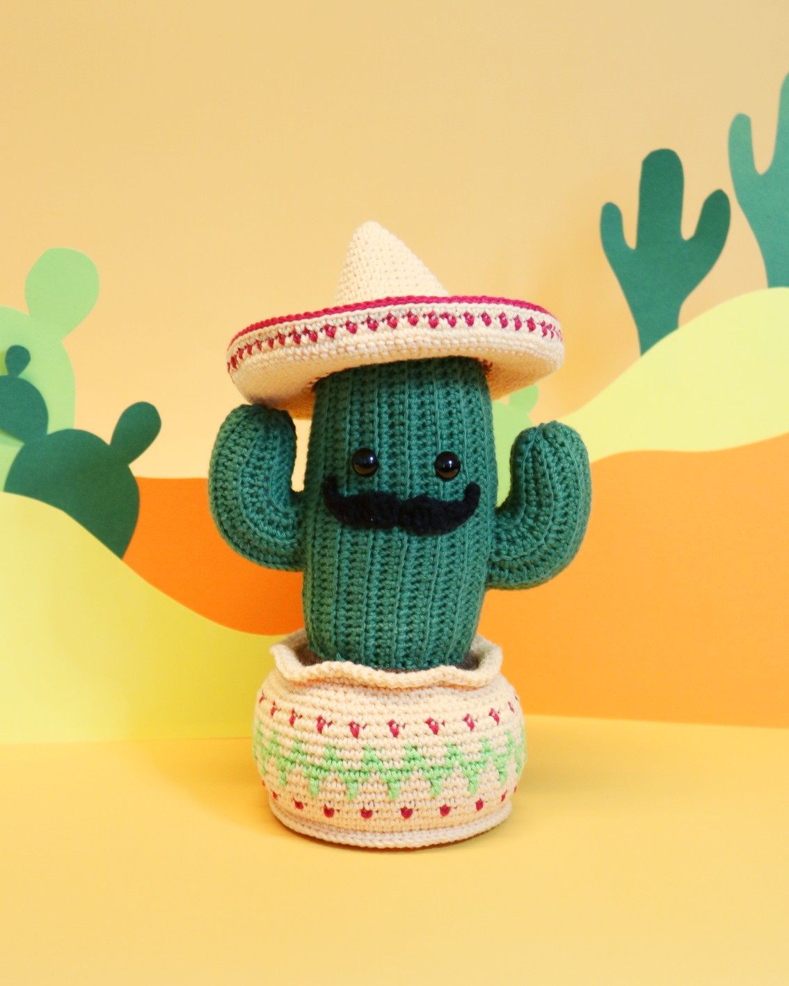 Den færdige kaktus bliver ca. 21 cm høj med sombrero (eller ca. 18 cm uden sombrero).