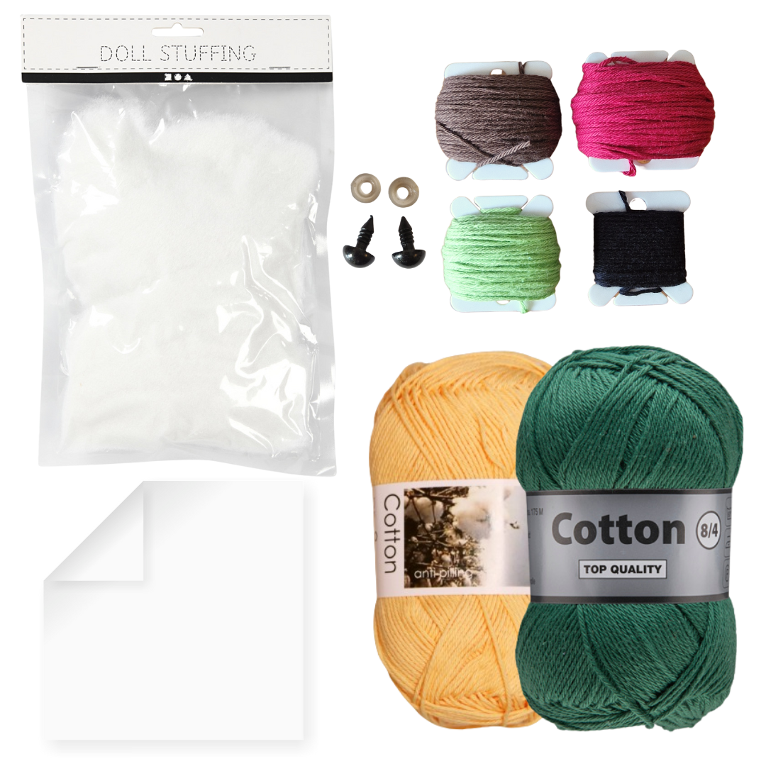 Hæklekittet indeholder alt hvad der skal bruges for at hækle Kaktussen Carlos: