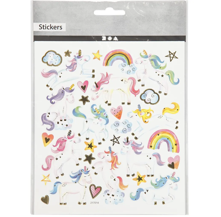Indeholder ét ark med klistermærker, arket måler 15×16,5 cm