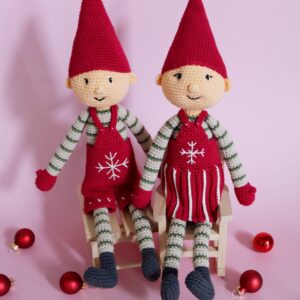 -15% ved køb af 5 hækleopskrifterNisserne Ellie og Elliot, Hækleopskrift