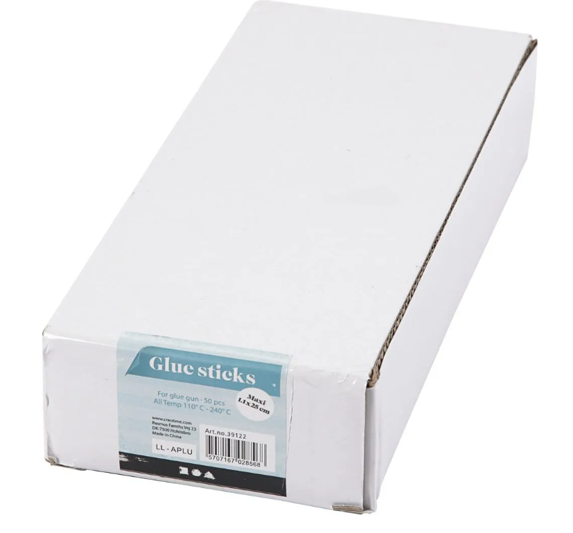 Klare limstænger der passer til maxi limpistol – både til høj- og lavtemperatur.