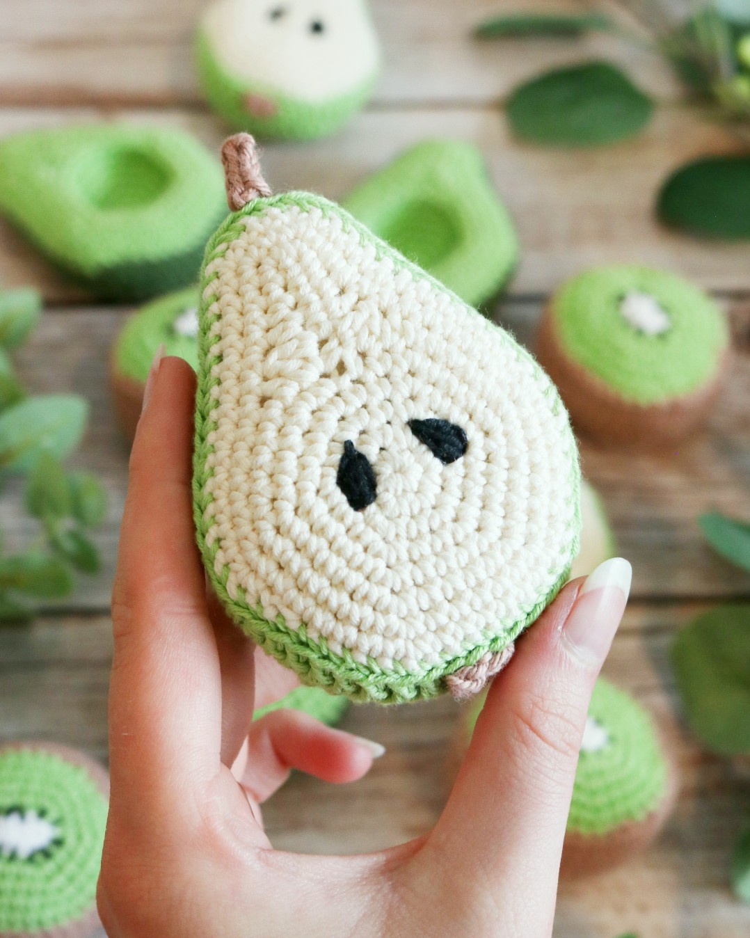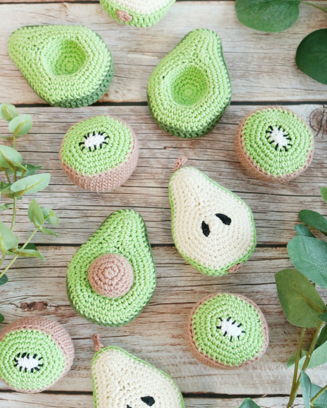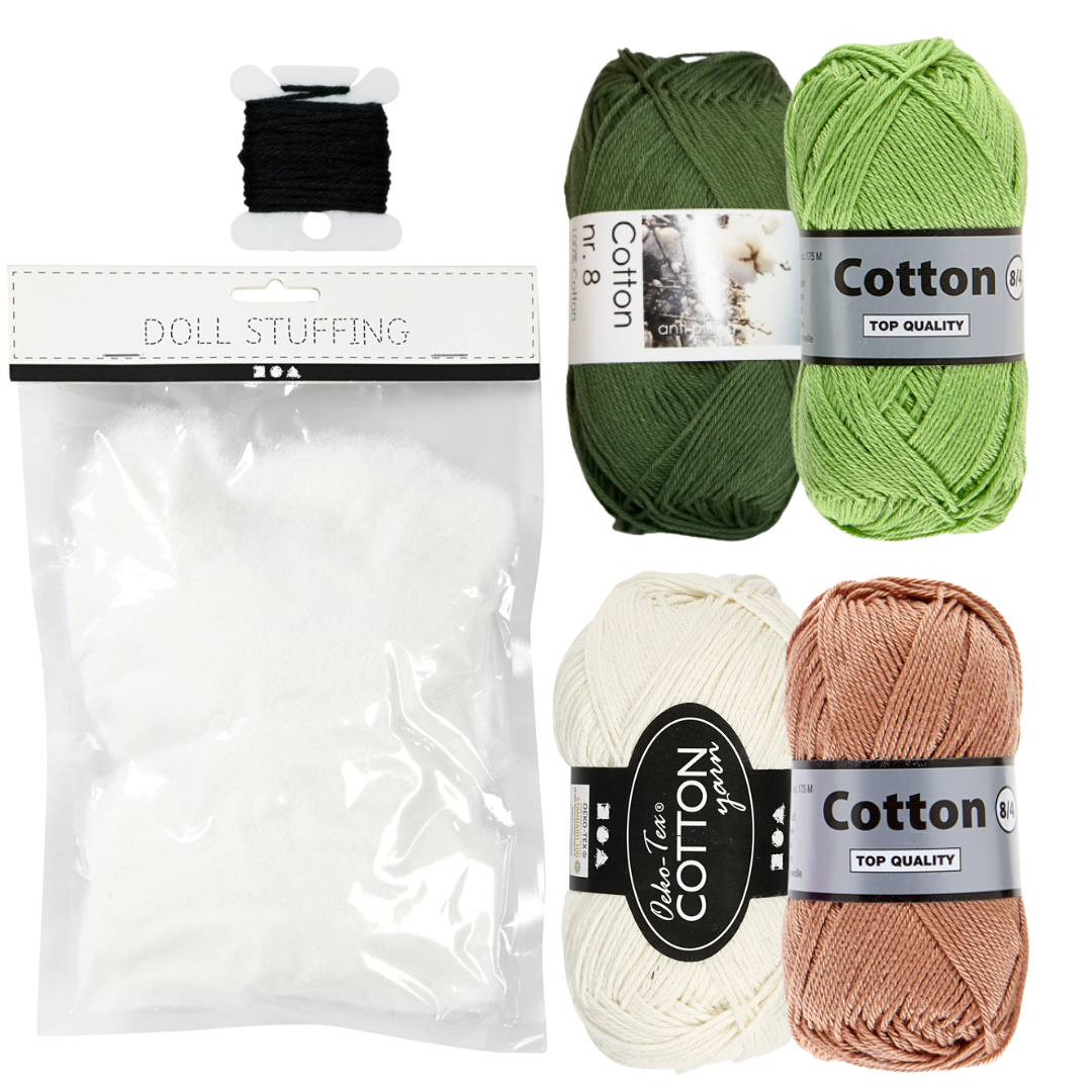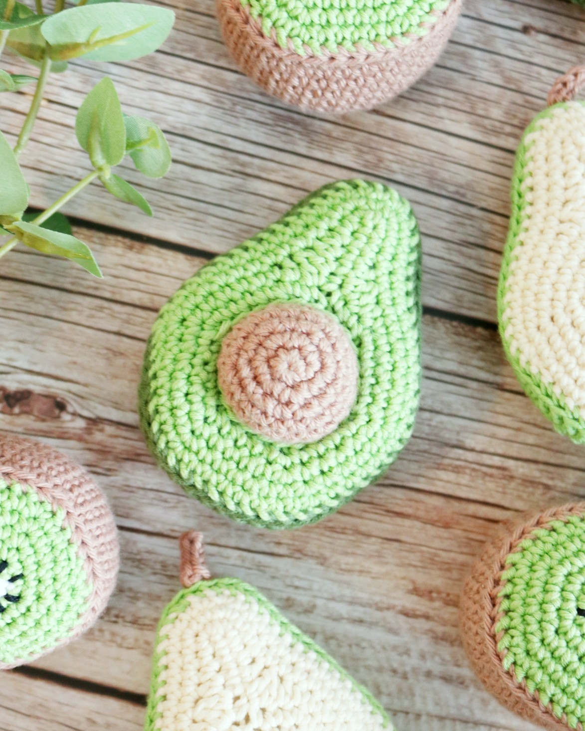Hæklekittet indeholder materialer til 4 stk af hver frugt