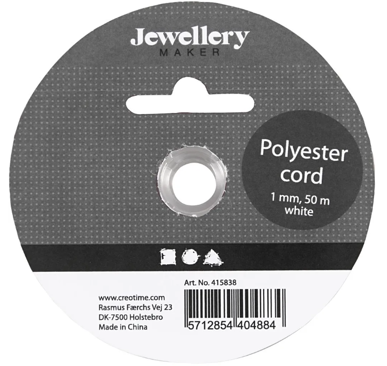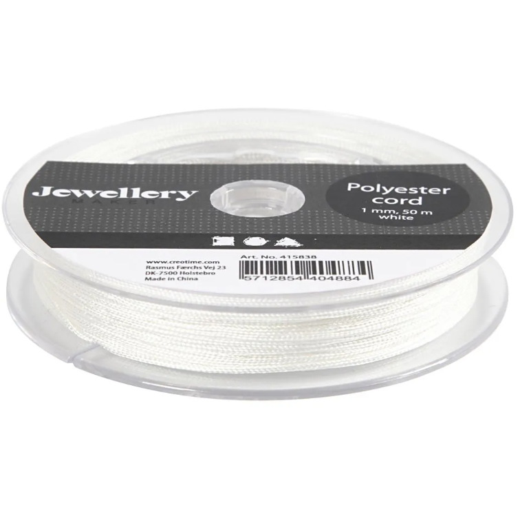 Blank polyester snor i flot, stærk kvalitet. Snoren kan fx bruges til smykker, men den er også perfekt til fx barnevognskæder o.lign.